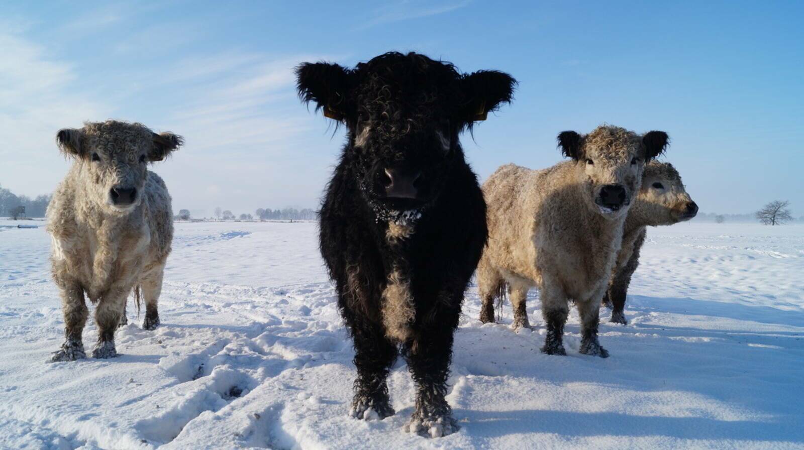 Unsere Galloways sind eine extensive Fleischrinderrasse, das bedeutet, dass wir sie möglichst naturnah gehalten werden.
